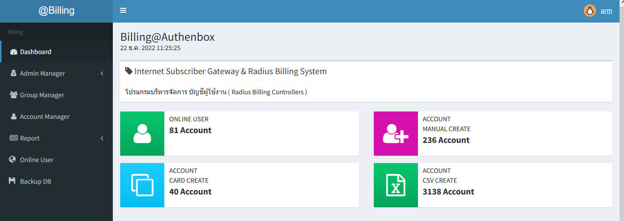 - Radius Billing ถูกพัฒนาผ่านการใช้งานจริงมากกว่า 10 ปี จนถึงปัจจุบัน