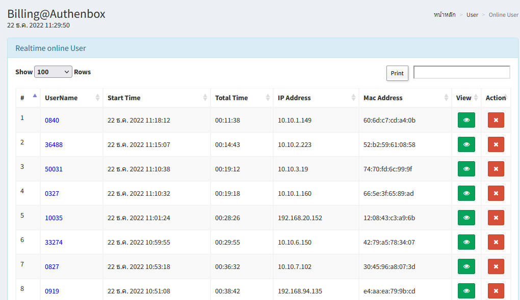 - รองรับ การ คลิ๊ก Disconnect ( Kick เตะ user ) ออกจากระบบ MikroTik Hotspot