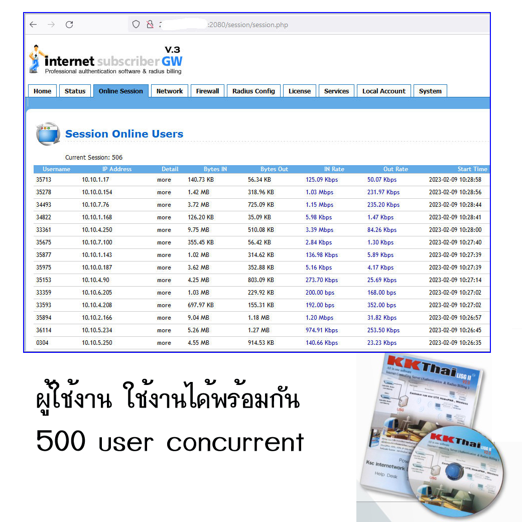 - ติดตั้ง Software Internet Authentication & Radius Billing & Log file keep พร้อมใช้งาน